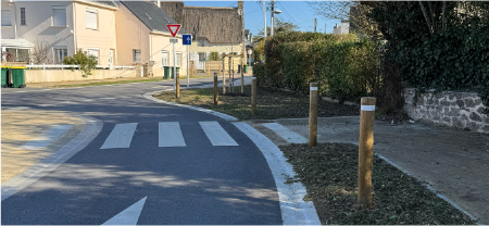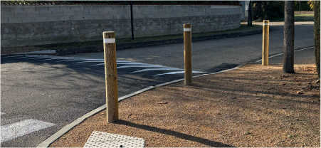 Chaque borne est équipée d’une bande réfléchissante classe 2 qui capte la lumière des phares, améliorant la signalisation de nuit dans les zones à faible luminosité. Elle offre ainsi une sécurité renforcée aux piétons et aux automobilistes, tout en restant discrète en journée.